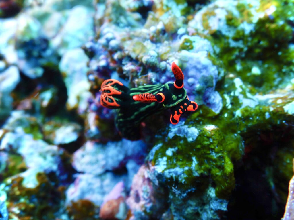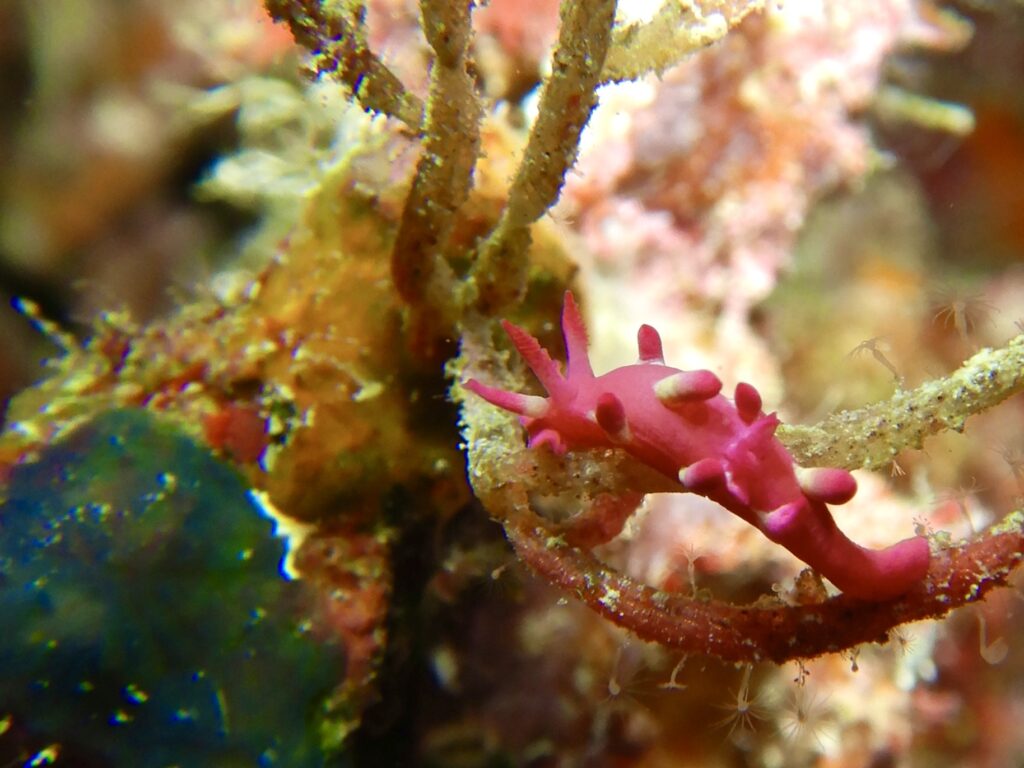 ラストはクリスマスカラーのアカフチリュウグウウミウシがいました。